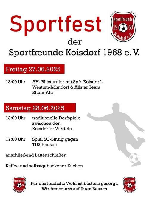 Die Mannschaft der Alten Herren und die Sportfreunde Koisdorf möchten sich auf diesem Wege für die großzügigen Spenden bedanken.